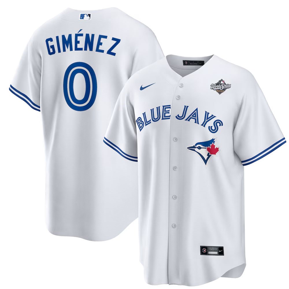 Youth Toronto Blue Jays #0 Andres Gimenez Nike 2025 World Series White Home Replica Jersey